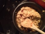 Why quiona? it’s quick. it’s “healthier” than rice. we like it. Saute the onion in a saucepan. Add the quiona and boiling water. Simmer. Add the cinnamon, cardamom, and star anise. Cook til it’s cooked and fluffy (and the water is absorbed). Saute the cashews, apricots, and dates in olive oil or a dab of butter til the nuts turn brown. add to the quiona and tada!