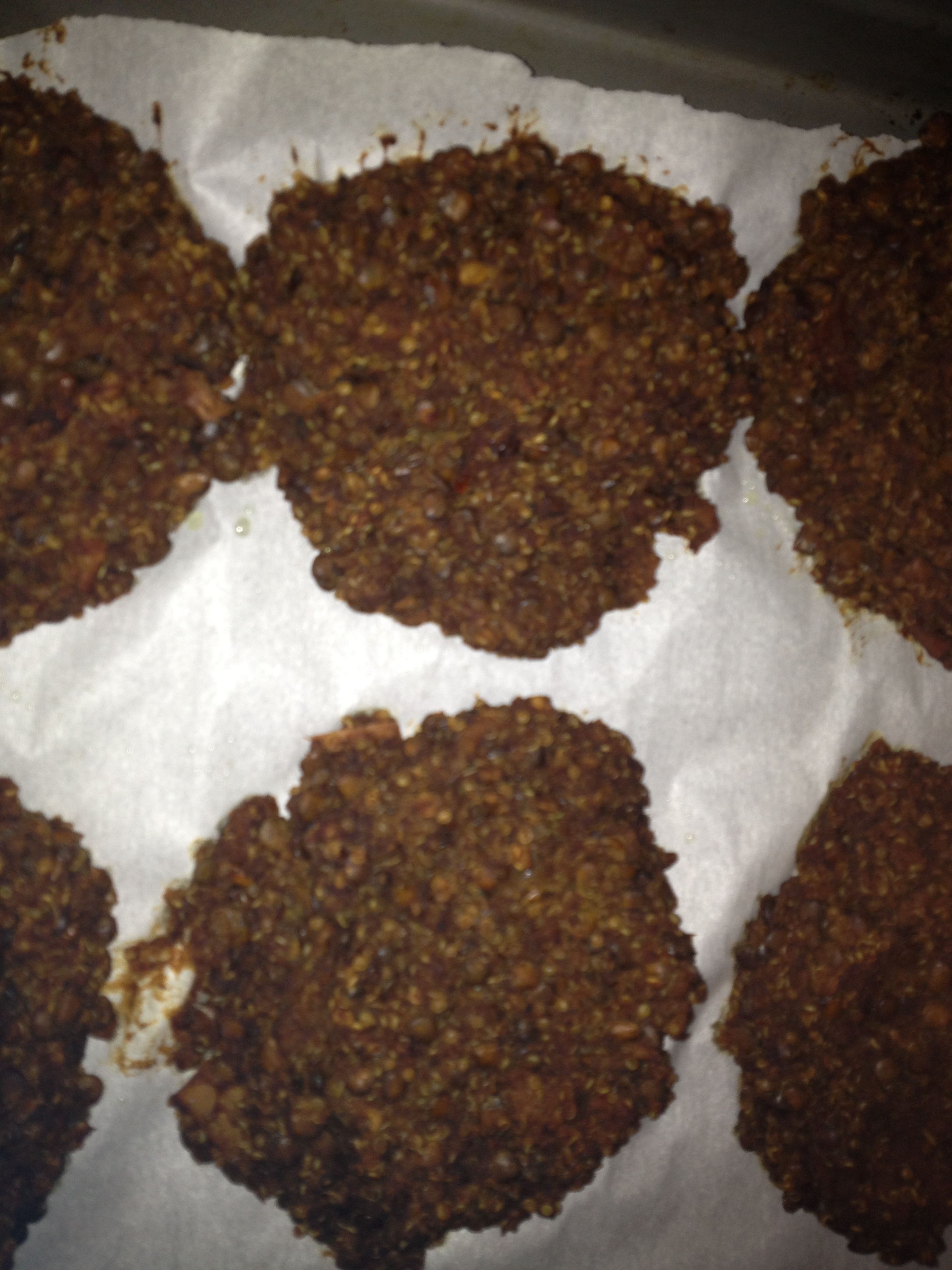 Last week the Washington Post had some great veggie recipes…this is a modification of one of them the BGR veggie burger. BGR makes a pretty good veggie burger. I modified the recipe because I wanted to make it a tad healthier (quinoa instead of rice and I eliminated the frying step) and I used lentils because I don’t eat black beans. I also halved the recipe…they must make some FAT burgers…because I still got 10 pretty good sized ones (they said serves 12). I also didn’t feel the need to eat this on a bun.
