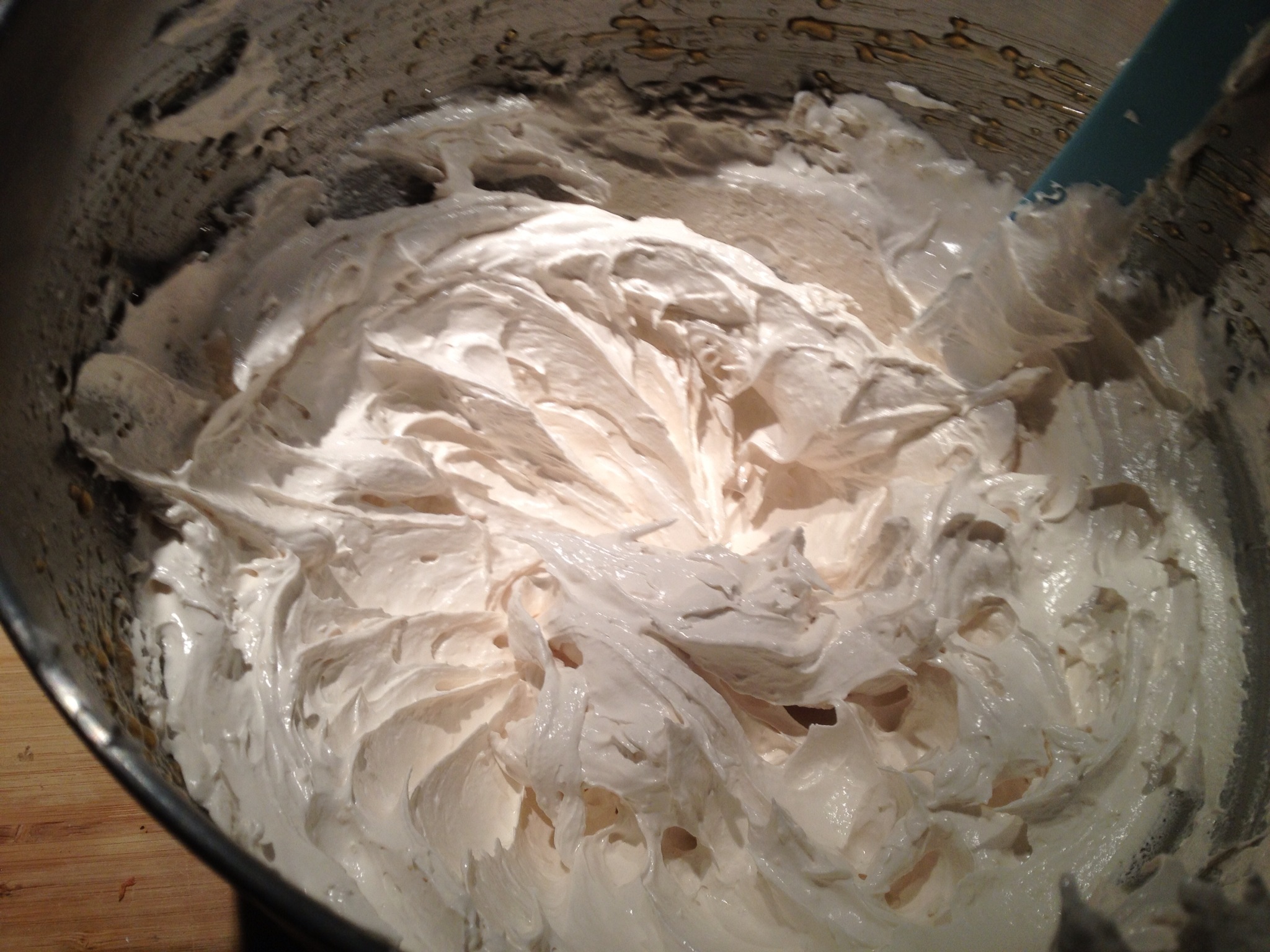 - Whip until shiny, stiff, and fluffy.